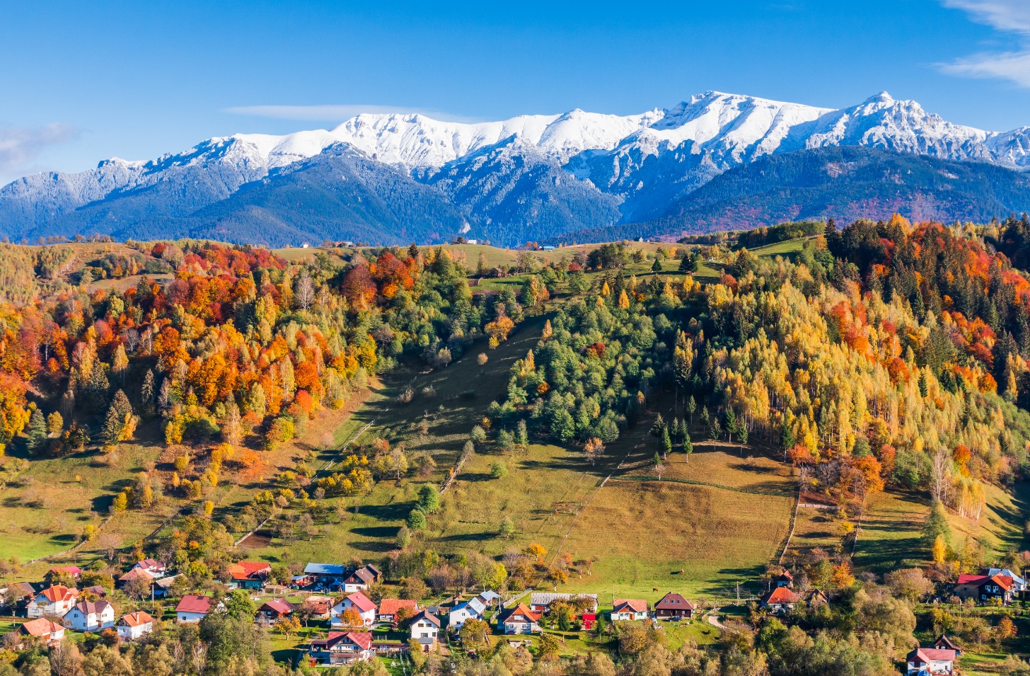 Moeciu, eingebettet im Herzen der Karpaten, ist eines der charmantesten Winterziele Rumäniens. Nur wenige Kilometer vom legendären Schloss Bran entfernt, verwandelt sich Moeciu in der Weihnachts- und Silvestersaison in eine wahre Wintermärchenlandschaft. Umgeben von den dramatischen Gipfeln der Bucegi- und Piatra-Craiului-Berge bietet dieses Bergdorf eine ruhige und festliche Auszeit.